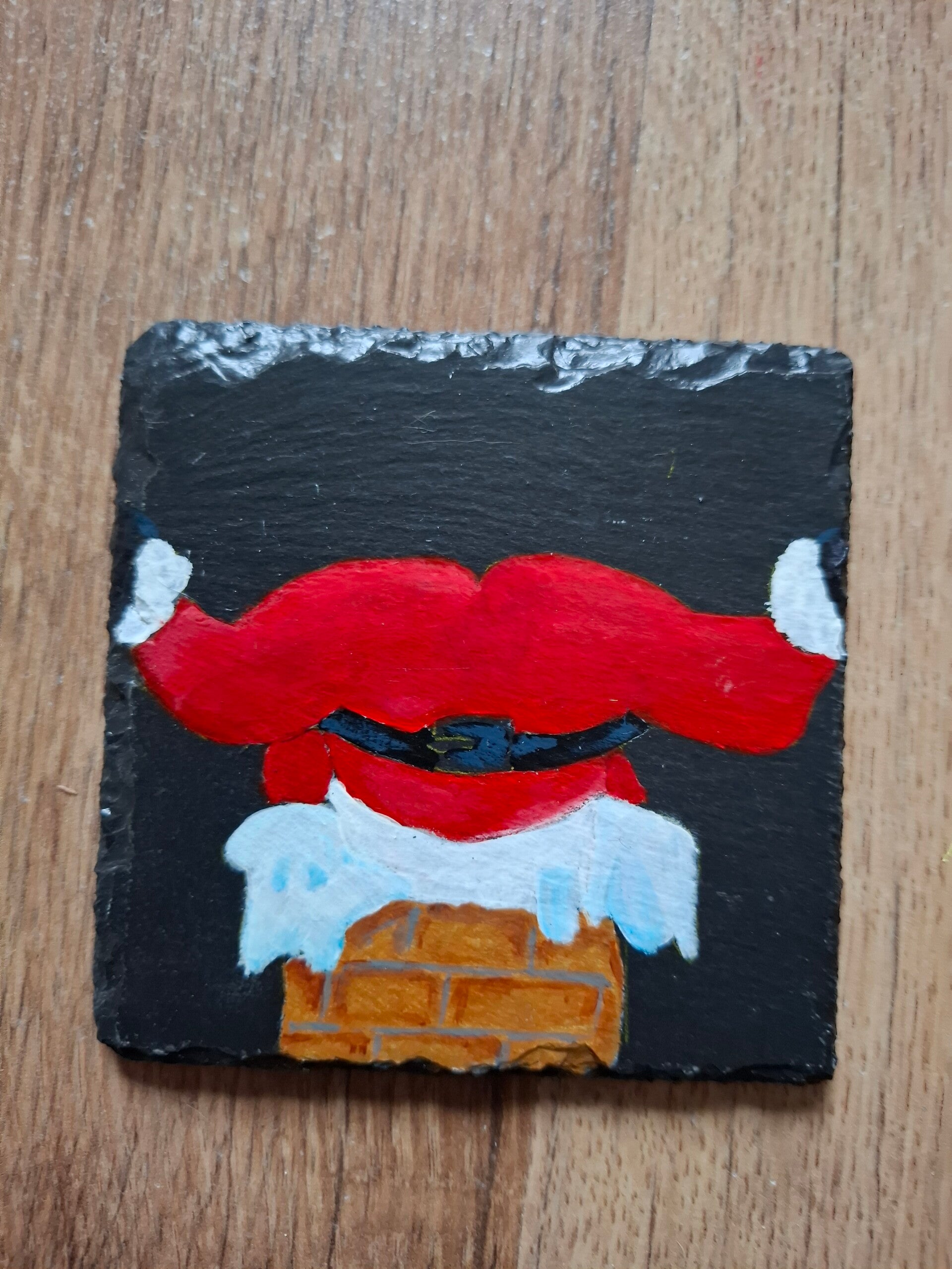 Vrolijk en speels: deze set van 6 leistenen onderzetters laat kerstmannen zien die klem zitten in de schoorsteen. Elk exemplaar is met de hand beschilderd en daardoor uniek. Een humoristische toevoeging aan je kersttafel en een perfect cadeau voor de feestdagen.