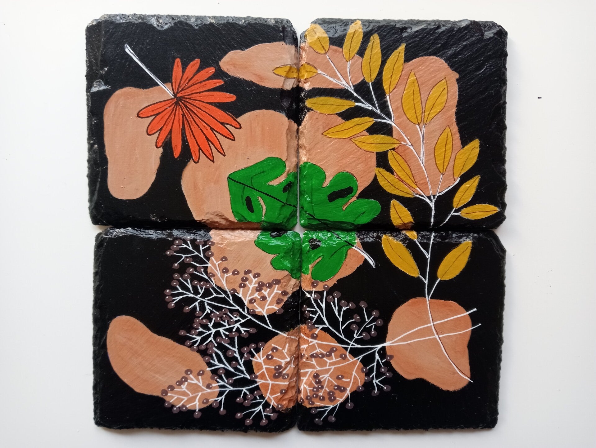 Handbeschilderde leistenen onderzetters