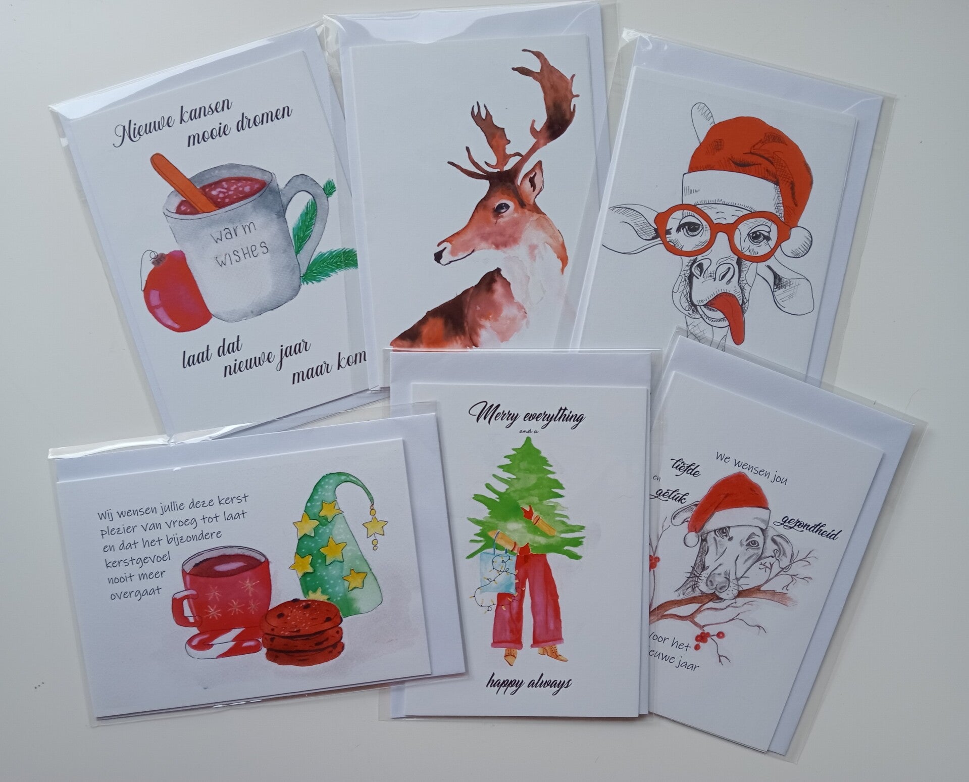 Set van 6 verschillende dubbele kerstkaarten inclusief envelop
