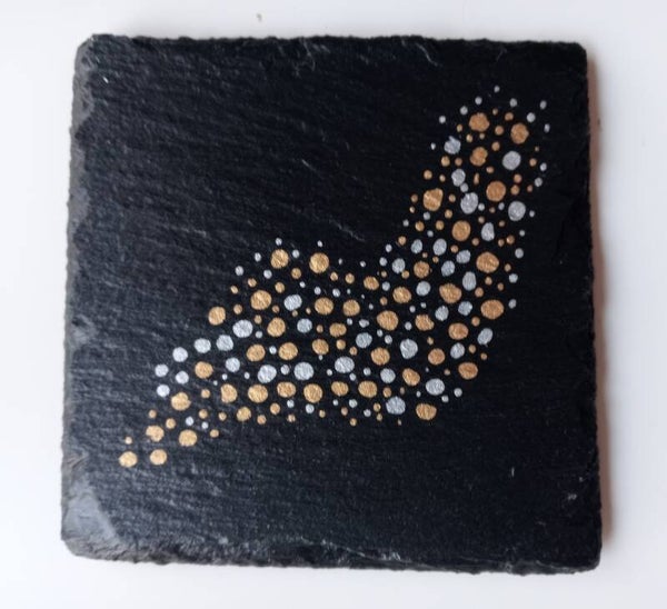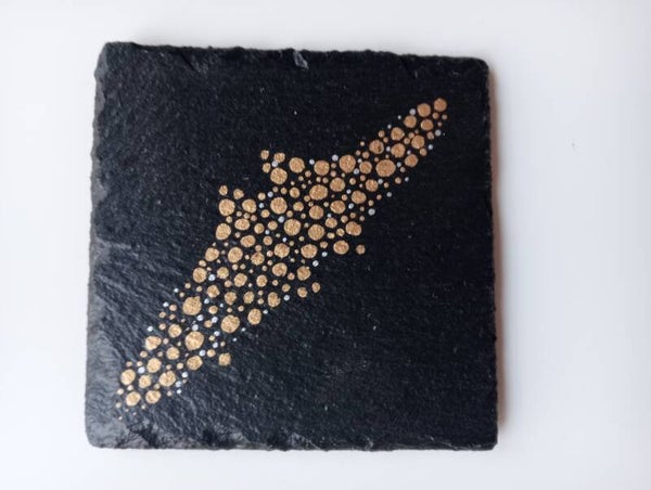 Elke stip is met zorg gezet op stoer leisteen – een combinatie van sprankeling en natuurlijke charme. Perfect voor feestelijke gelegenheden of als chique accent bij je borrelplank.