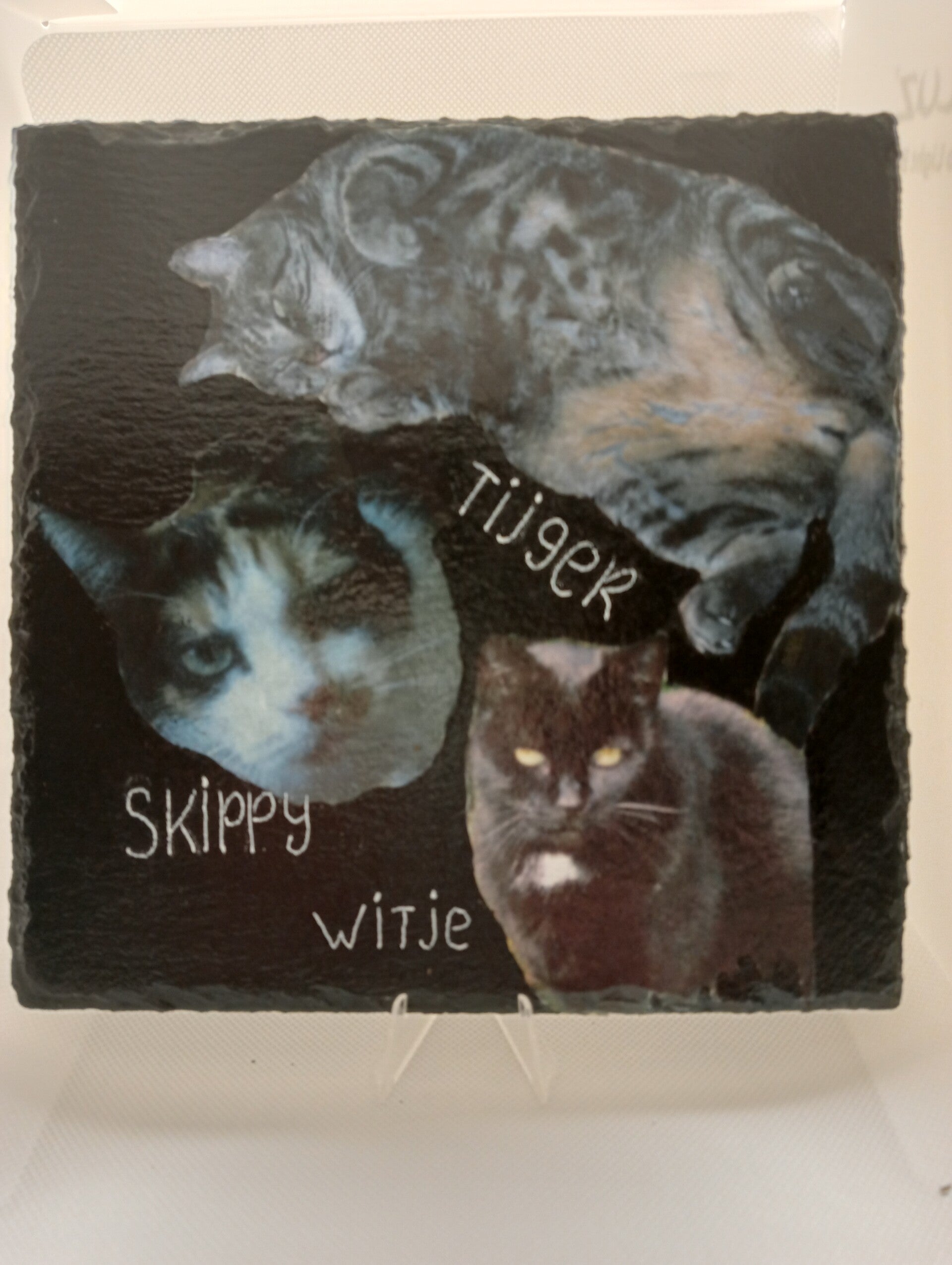 Uw favoriete foto kan ik erop schilderen of d.m.v. decoupage op de leisteen overbrengen.