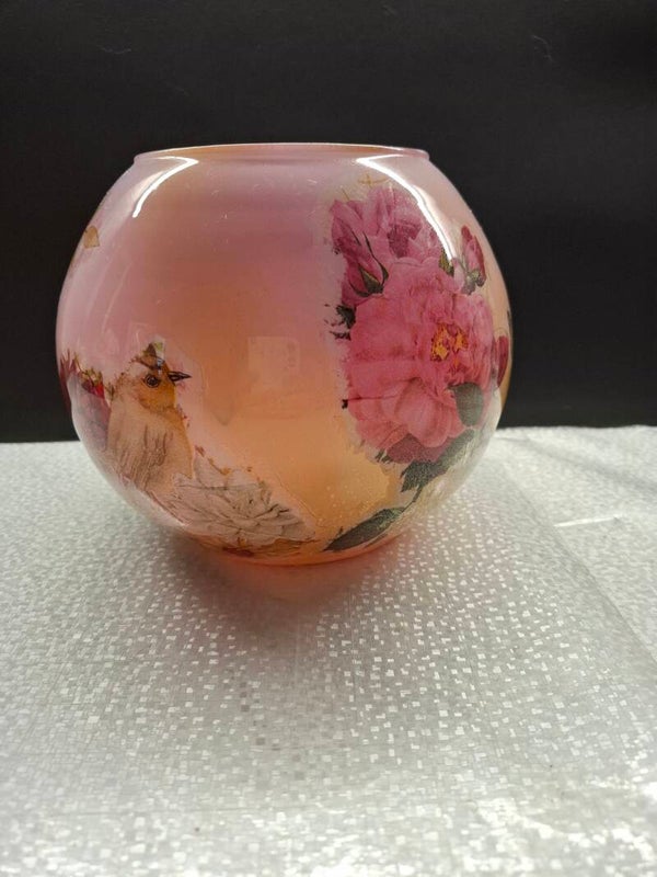 Mooie grote bolvaas met reverse decoupage