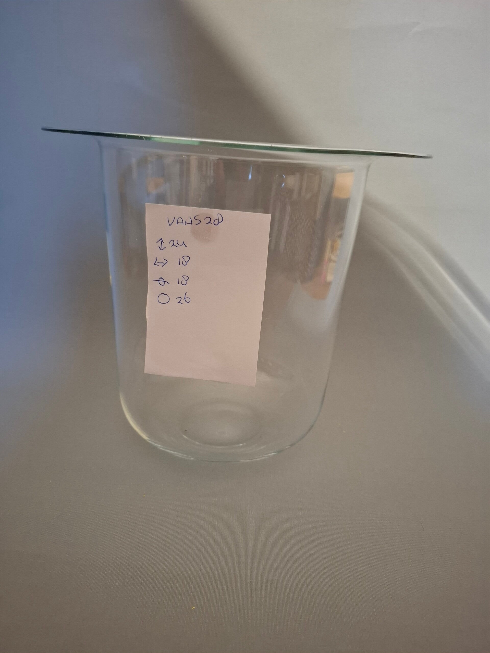 Deze vaas met een brede rand is 24 cm hoog, de vaas is 18 cm breed net als de opening, de rand erom heen is 26 cm