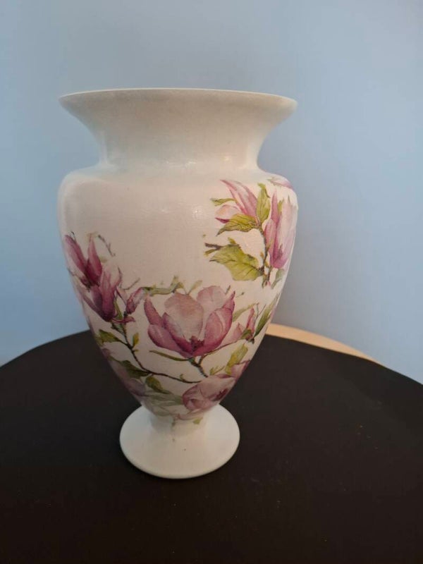 Deze prachtige vaas is aan de buitenkant verfijnd bewerkt met gedetailleerde afbeeldingen van magnolia's, wat een elegante en natuurlijke uitstraling geeft. Geschikt voor dagelijks gebruik, want de vaas kan zonder problemen met water worden gevuld. Perfect voor het presenteren van verse bloemen of als stijlvolle decoratie in je interieur.