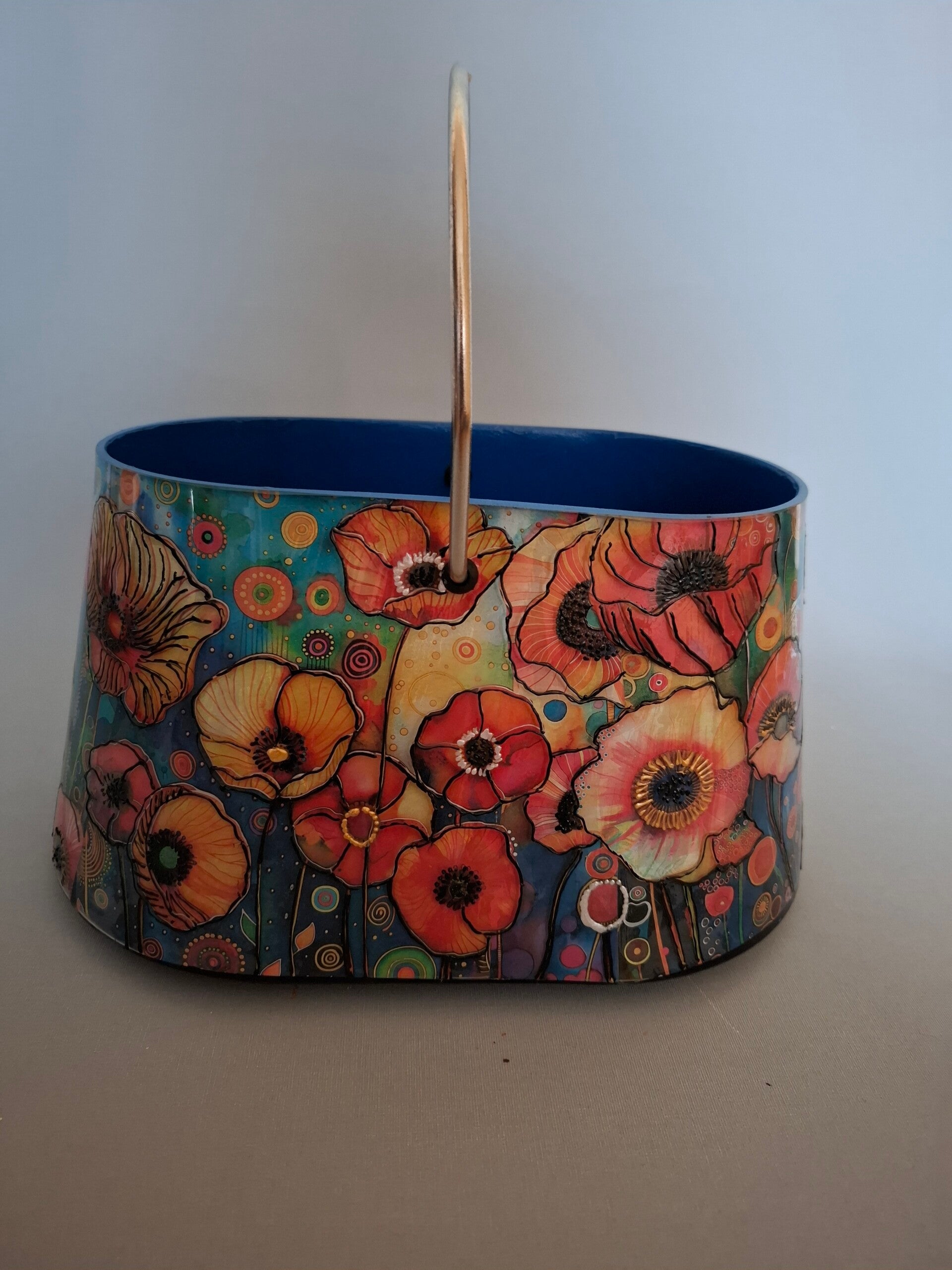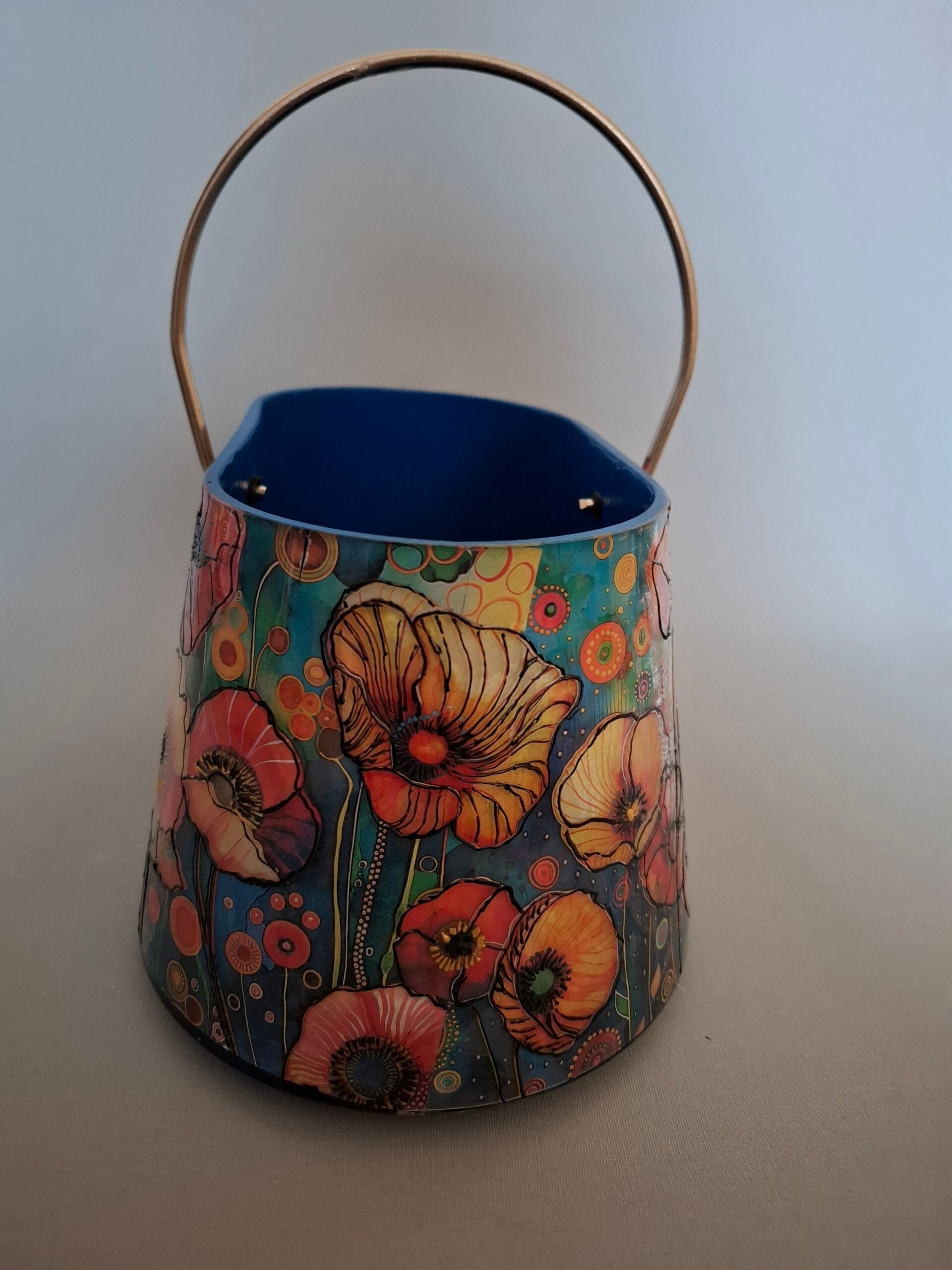 Maak kennis met een bijzondere en stijlvolle vaas die niet alleen functioneel is, maar ook een echte eyecatcher in elk interieur. Deze vaas is ontworpen in de vorm van een elegant handtasje, waardoor het een speelse en unieke uitstraling heeft. De binnenkant is verfijnd afgewerkt en prachtig bewerkt met levendige afbeeldingen van klaprozen. Dit gedetailleerde design voegt een vleugje natuur en verfijning toe aan het geheel. Ideaal als cadeau of als opvallend decoratiestuk in uw eigen huis.
