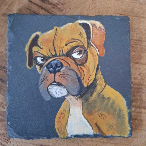 Handbeschilderde Leistenen Onderzetters met Grappige Honden