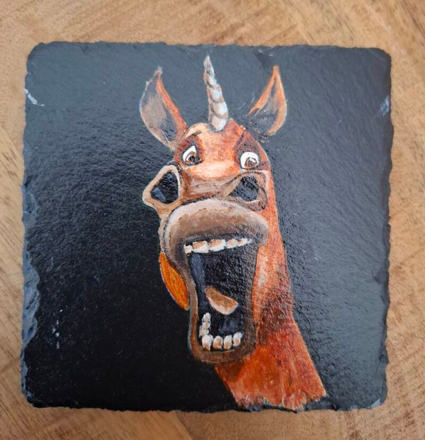 Op zoek naar iets dat je tafel én je gasten aan het lachen maakt? Deze handbeschilderde leistenen onderzetters met gekke paarden zijn allesbehalve standaard. Elk paard is met de hand geschilderd op echt natuursteen, voorzien van een vrolijke grimas, eigenwijze blik of een maffe manenkuif – kortom: karakter in kwaststreken