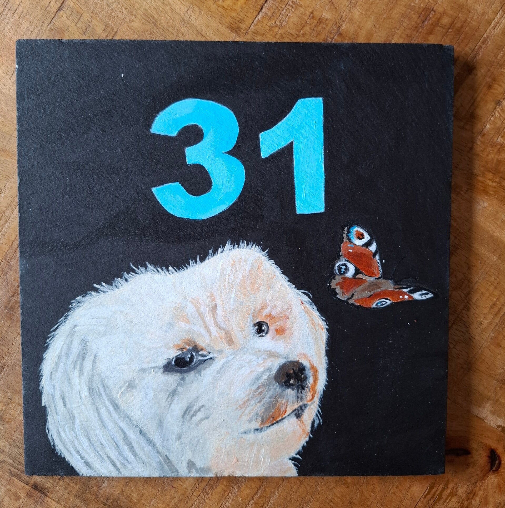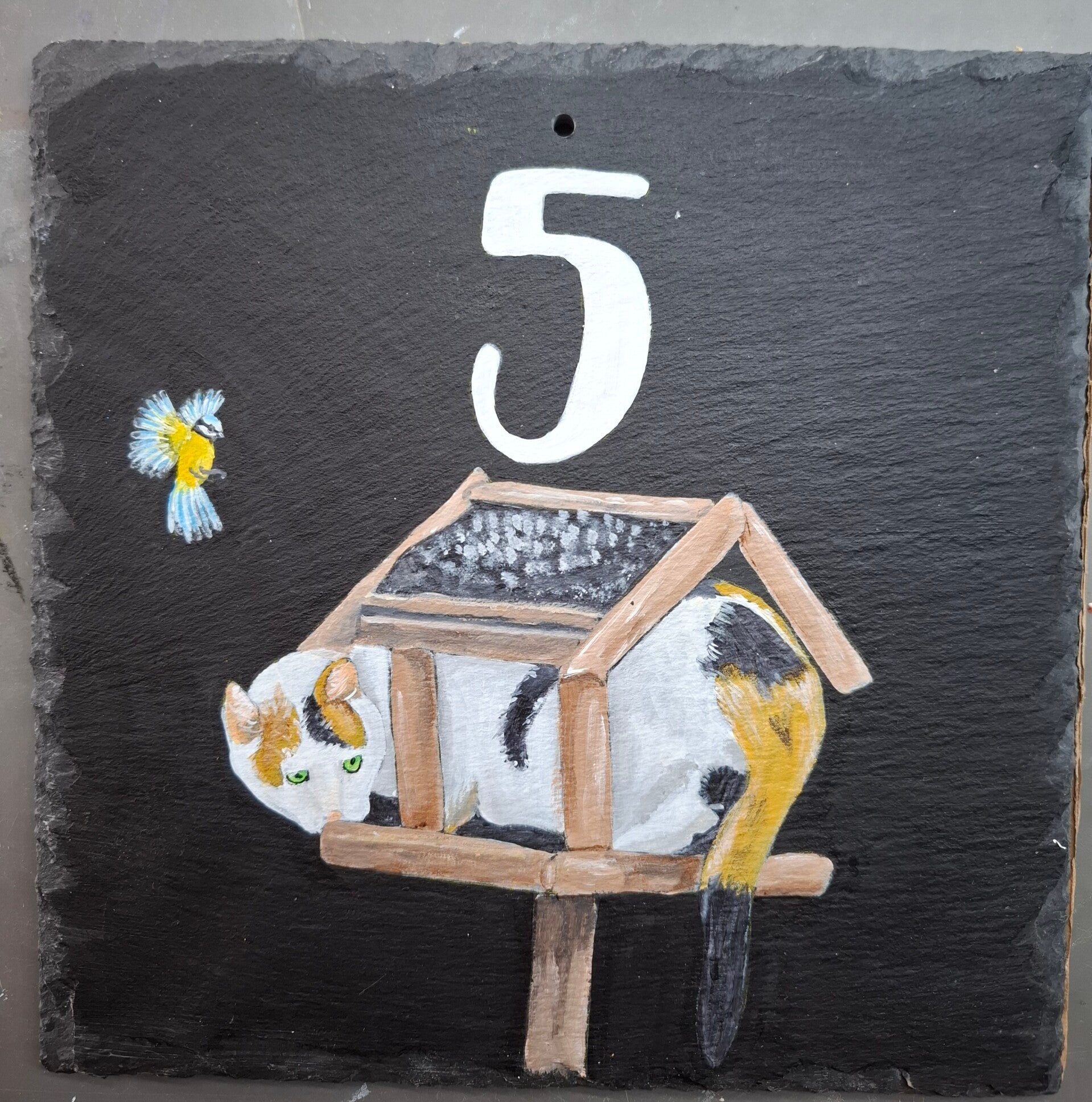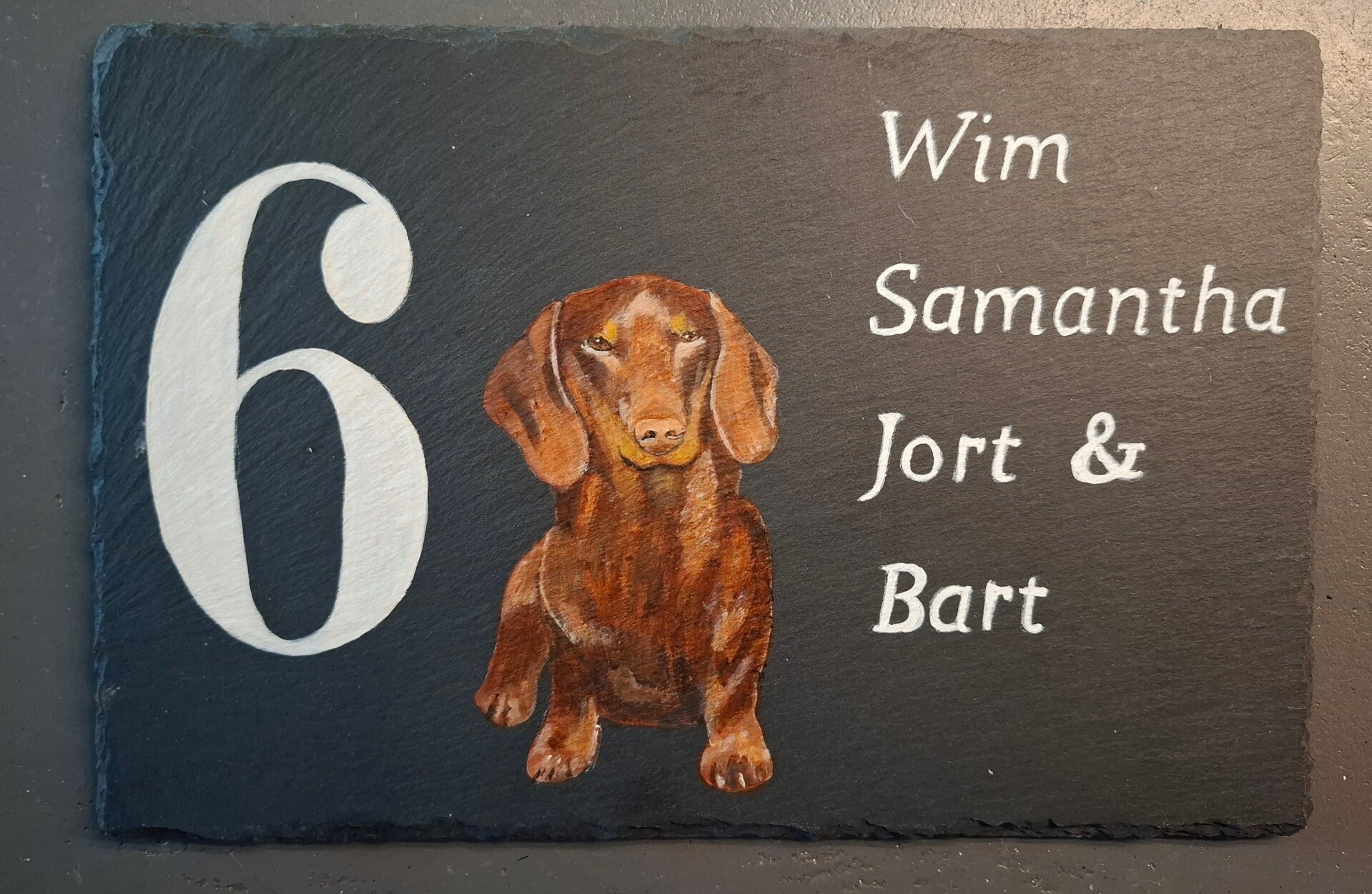 Met een handbeschilderd leisteen huisnummerbord geef je jouw huis een charmante en persoonlijke uitstraling waar bezoekers meteen vrolijk van worden.
