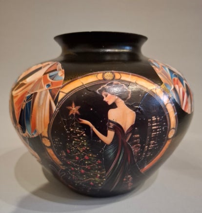 Zwarte Art Deco kerst vaas – stijlvol, elegant en ideaal voor kerststukken of feestelijke bloemen. Een chique blikvanger in jouw interieur.